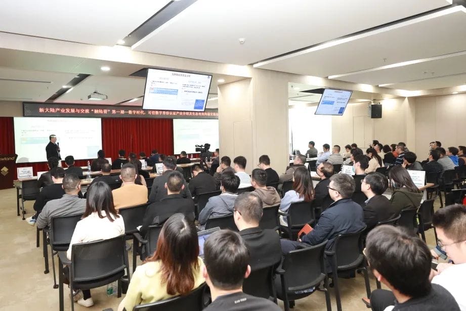 交流會上,分享嘉賓林龍通過深入淺出的講解,以對時代大勢的深刻洞察,結合近年來深耕行業的見聞,為參會嘉賓們送上了一場豐富的知識盛宴。他圍繞“新時代的需求與挑戰”、“可信數字身份是新時代的新基建”、“可信數字身份產業戰略”等主題展開分享,深度剖析“可信數字身份”的戰略意義和行業前景,詳細講解了其底層邏輯和核心技術,呈現了一幅“可信數字身份+”的美好藍圖。林龍表示,網絡可信身份是推動數字世界治理能力現代化的必由之路,新大陸作為可信數字身份核心戰略合作伙伴、一級應用合作機構、全套數字身份應用產品的合作研發伙伴,有著一定的先發優勢。融合世界已然到來,期待新大陸各產業共同思考和探索在數字公民生態建設中的合作點和機會點,共同推動可信數字身份產業發展。