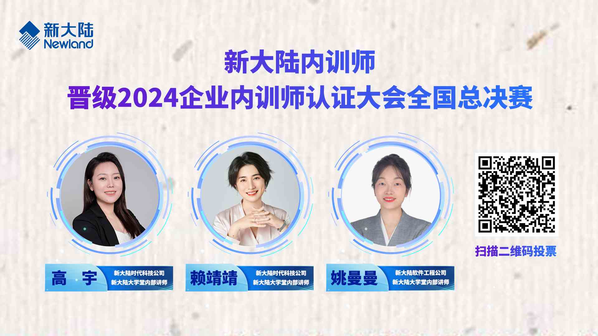 近日,2024師道匠心·企業(yè)內(nèi)訓(xùn)師認(rèn)證大會(福建分會)圓滿舉行。100多位來自各地、各行業(yè)的優(yōu)秀選手報名參加,經(jīng)過線上選拔和初賽復(fù)賽認(rèn)證,在多位由企業(yè)培訓(xùn)負(fù)責(zé)人、行業(yè)專家、大學(xué)教授組成的評委團(tuán)的全面評審下,新大陸大學(xué)堂三位內(nèi)部講師——高宇、賴靖靖、姚曼曼脫穎而出,作為福建賽區(qū)10強(qiáng),晉級全國總決賽。
