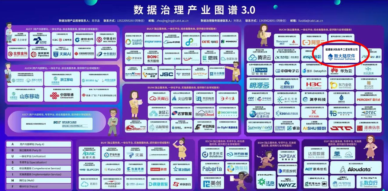 會(huì)上,大數(shù)據(jù)技術(shù)標(biāo)準(zhǔn)推進(jìn)委員會(huì)正式發(fā)布了《數(shù)據(jù)治理產(chǎn)業(yè)圖譜3.0》,旨在通過(guò)梳理數(shù)據(jù)治理相關(guān)產(chǎn)品及服務(wù)的市場(chǎng)現(xiàn)狀,洞察數(shù)據(jù)產(chǎn)業(yè)發(fā)展現(xiàn)狀及未來(lái)發(fā)展趨勢(shì),為各方在數(shù)據(jù)治理領(lǐng)域的布局規(guī)劃和未來(lái)發(fā)展提供參考。新大陸軟件入選《數(shù)據(jù)治理產(chǎn)業(yè)圖譜3.0》BUCM板塊(獨(dú)立服務(wù)商、一體化平臺(tái)、綜合類服務(wù)商、提供跨行業(yè)領(lǐng)域服務(wù))。從1.0到2.0,再到3.0,新大陸軟件連續(xù)三屆入選《數(shù)據(jù)治理產(chǎn)業(yè)圖譜》,這不僅是對(duì)新大陸軟件在數(shù)據(jù)治理領(lǐng)域持續(xù)深耕的充分肯定,更是對(duì)其在推動(dòng)數(shù)據(jù)治理產(chǎn)業(yè)發(fā)展方面所做貢獻(xiàn)的高度評(píng)價(jià)。